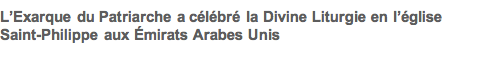 M. Oleg Fomin, Consul général de la Fédération de Russie à Dubaï et aux émirats du nord (EAU) et M. Andrei Vadov, Consul général de la Fédération de Russie à Racht (Iran) ont été également présents à la Liturgie.