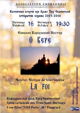 Nous vous rappelons que le vendredi prochain aura lieu une conférence sur la Foi avec Mgr Nestor de Chersonèse.